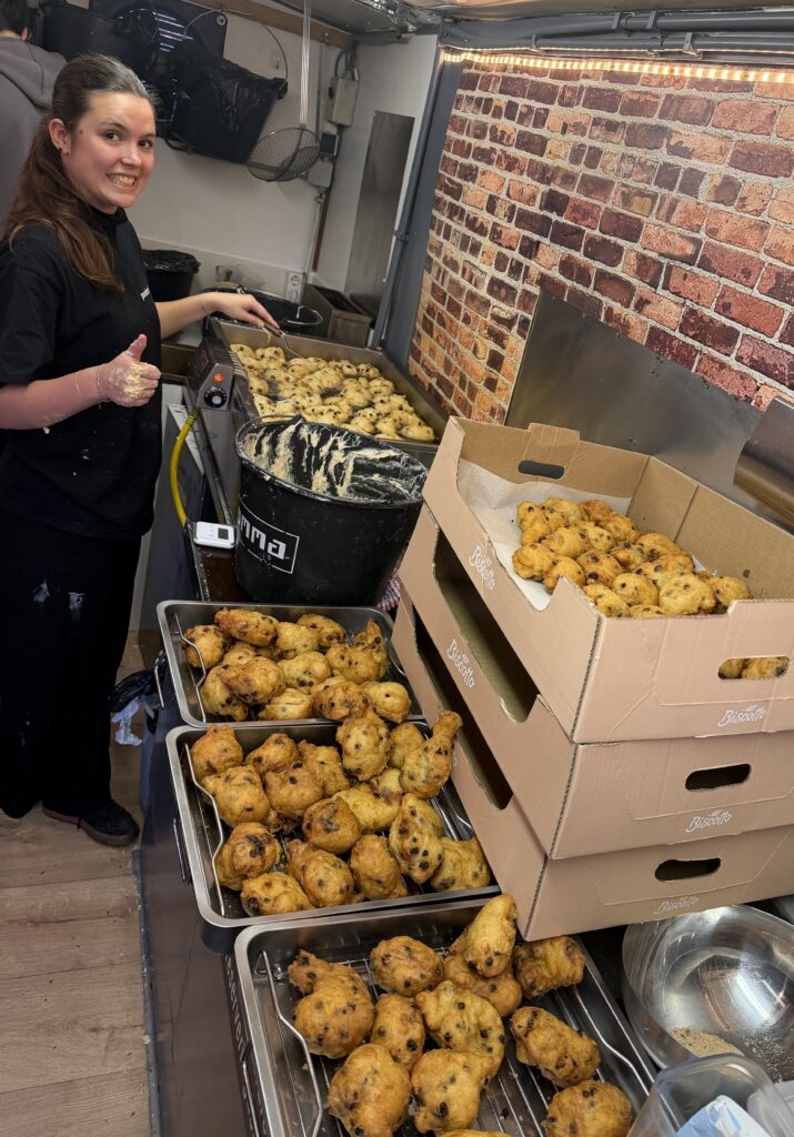 De taken verdelen we met zijn vijven. Morris, Mayra, Marjan en Jan bakken en verkopen allemaal (multi-talenten😊) en Anwar helpt mee in de verkoop. Samen houden we ook de social media bij. Het is vooral een erg leuk project waar we hard voor werken met veel plezier. De kraam vervult bovendien ook een belangrijke sociale functie in het dorp. We vinden het heerlijk om met dorpsgenoten te kletsen en via de kraam mensen met elkaar te verbinden door samen een oliebolletje te eten.